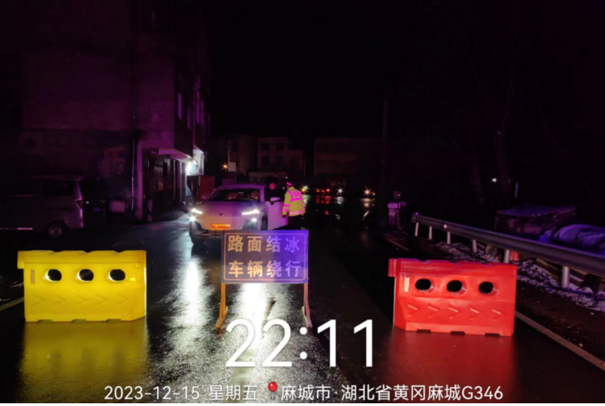 12月15日晚,木子店镇出现雨雪冰冻天气,为确保群众安全出行,木子店镇政府以雪为令,迅速启动恶劣天气应急处置预案,连夜组织派出所、公路养护站、天井山村委会对346国道天井山段结冰路面撒盐,并在扬眉三屋湾设卡,安排10余名民警和干部通宵轮流值班,对通行车辆实施管控。