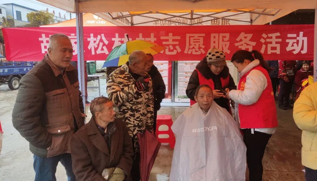 12月15日,白果镇胡家松林村联合中国邮政银行麻城分公司在辖区内开展防诈骗宣讲、义剪志愿服务活动,共服务周边群众60余人。