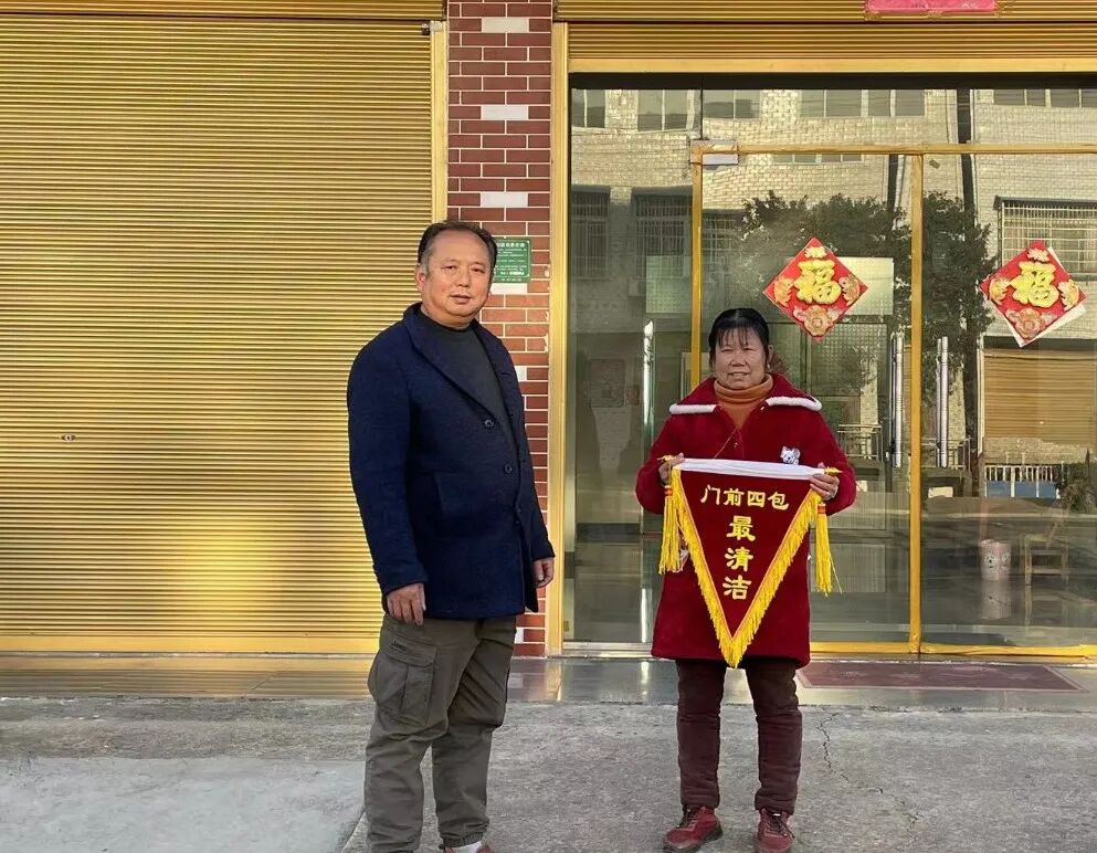 门前整整齐齐,墙面干干净净,屋内布置敞亮舒适。家住夫子河镇区振兴大道的尹淑怀在街道12月份卫生评比活动中收获“门前四包”最清洁荣誉。镇综合执法中心、戴家北门村、夫子社区干部、志愿者和群众代表一起将“门前四包”最清洁流动红旗送到尹大姐手中,尹大姐满心欢喜地承诺将继续努力,争取实现“最清洁”三月蝉联。