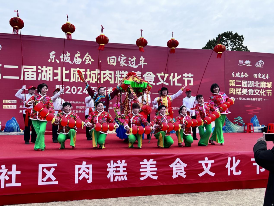为进一步弘扬和挖掘传统饮食文化,促进文旅融合发展,叫响麻城肉糕文化品牌,继1月28日第二届湖北麻城肉糕美食文化节暨2024新春年货节的隆重开幕,29日下午,滨河公园迎来了杨基塘社区肉糕美食文化节汇报演出。
