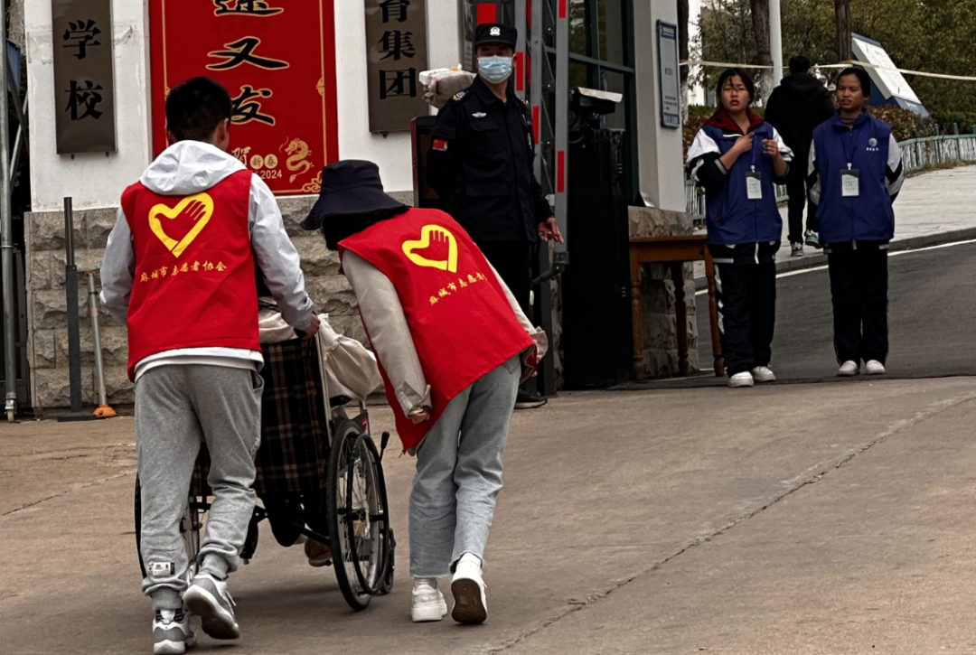 在248个主要酒店、3个考点现场、14个重要路口和5个来麻主通道,随时随地都能看到志愿者的身影。酒店大堂、火车站、高速路口等地设置爱心助考提示牌,帮助考生快速找到考点和酒店位置;组织酒店志愿者临近考试前40分钟提醒考生抓紧时间出发前往考场,避免错过考试时间;在重要路口设置停车指引牌,方便考生快速便捷停车;在考点现场,志愿者帮助轮椅考生顺利进考场,为忘带身份证的考生协调“雷锋车”;配合发放5000余份文创产品,推介本地特产美食和旅游景点,得到了考生和送考人群的一致好评。