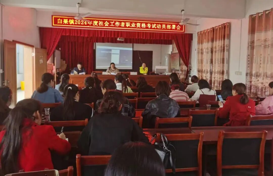 为加快推动社会工作人才队伍建设,提升基层社会治理和服务水平,4月3日,白果镇民政办在五行宫村组织召开了2024年度社会工作者职业资格考试动员部署会。