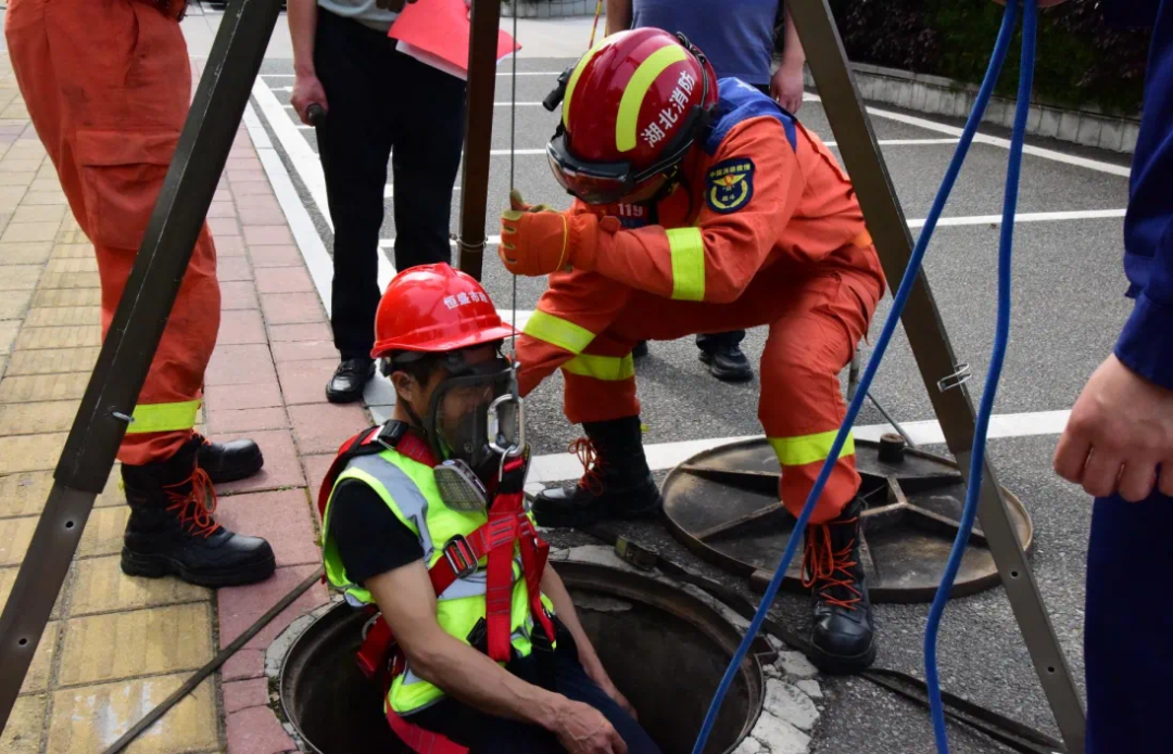 4月18日,市城管执法局组织市政公司联合麻城市中医医院、消防救援大队开展有限空间作业突发意外事件的应急救援演练。