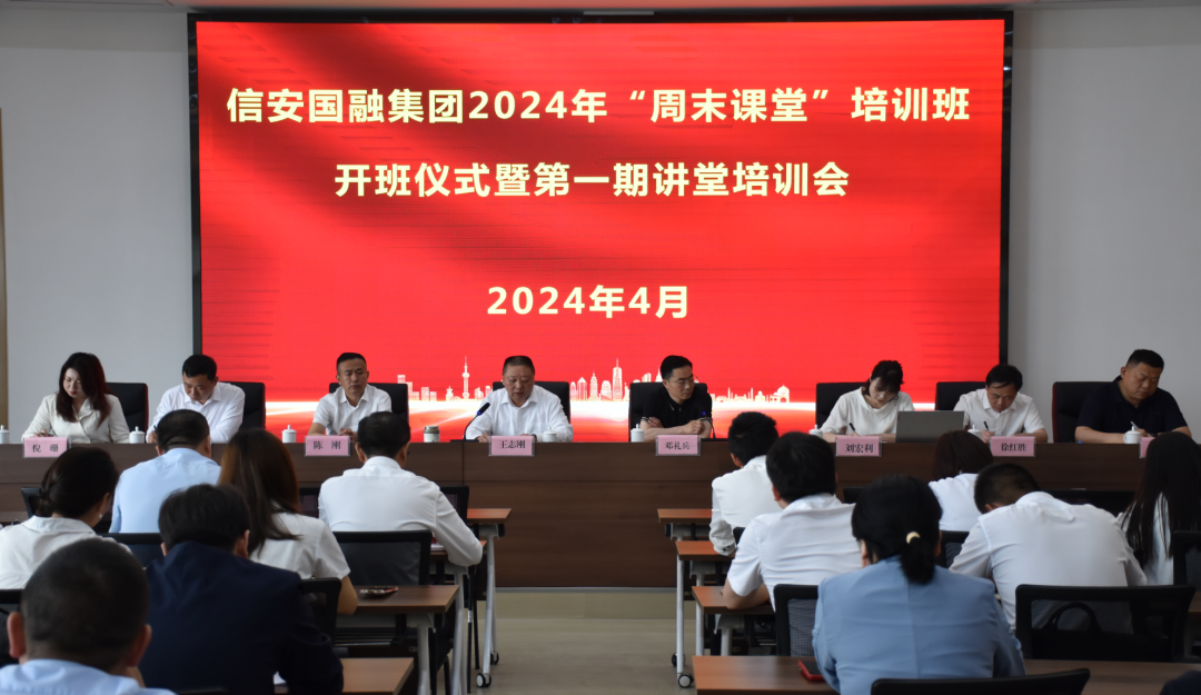 4月27日,市信安国融集团举办2024年度“周末课堂”培训班开班仪式暨第一期讲堂培训会。集团公司班子成员、子公司班子成员及全体青年职工共100余人参加。