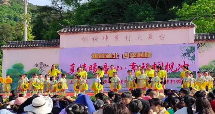 5月1日,“知音湖北·四季村晚”真情暖童心、幸福桐枧冲文艺汇演活动在湖北省旅游名村——黄土岗镇桐枧冲村文化广场热闹上演,活动现场人头攒动,热闹非凡,掌声笑语不断。