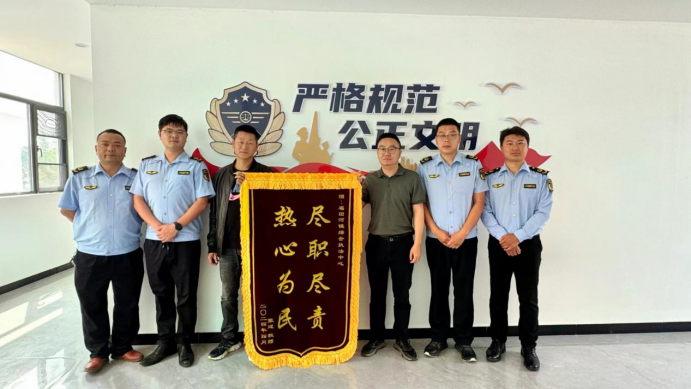 5月6日一早,福田河镇桠枫树村村民张先生将一面印有“尽职尽责 热心为民”的锦旗送到福田河镇综合执法中心负责人手中,表达了对镇综合执法中心工作人员的感激之情。