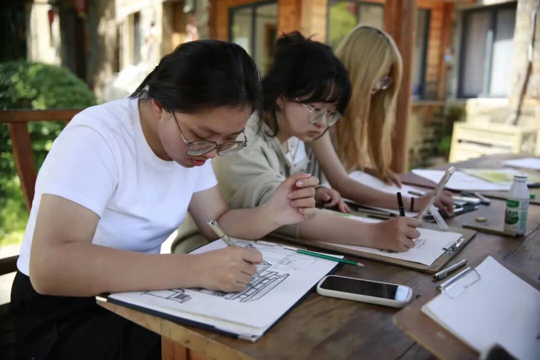 5月13至14日,黄冈师范学院美术学院环境设计专业56名学生来我市茯苓窝开展写生实践活动。