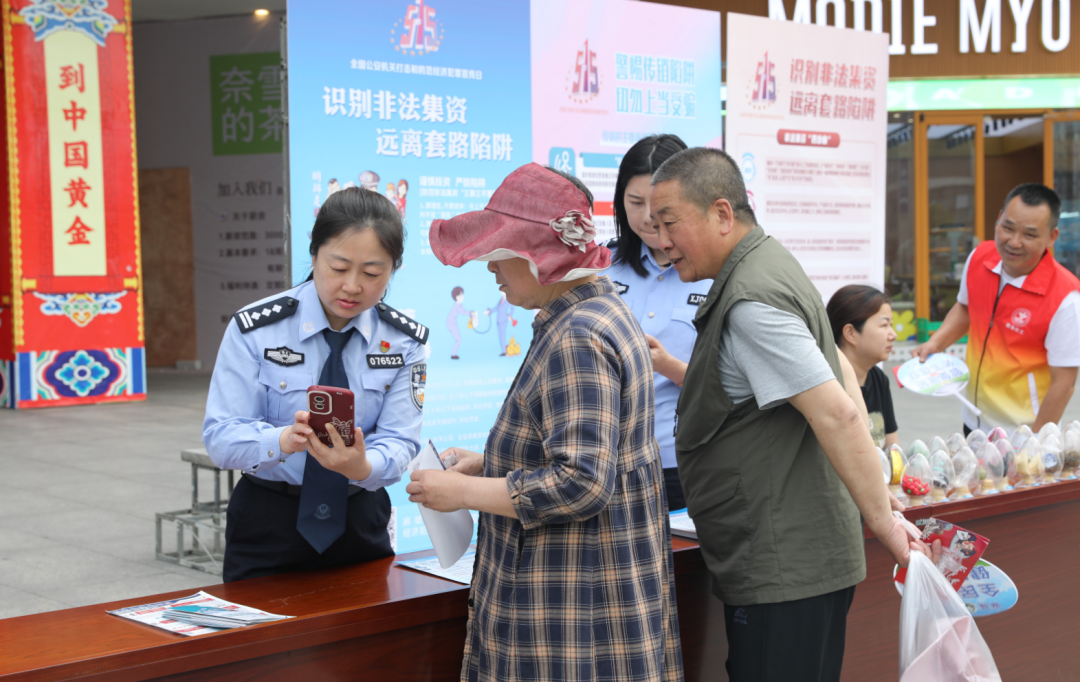 5月15日是第十五个全国公安机关打击和防范经济犯罪宣传日,市公安局经侦大队联合刑侦大队反电诈中心、禁毒大队、龙池桥派出所等部门单位开展主题为“与民同心 为您守护”的打击和防范经济犯罪宣传日系列活动。