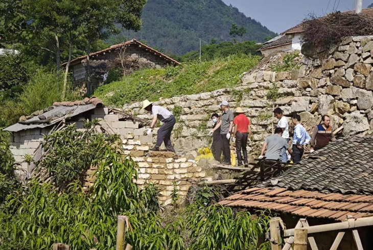 在拆违现场,乡村振兴专干将农户的柴火从小屋里搬出,帮助整理房前屋后的柴垛物品。由于天气炎热,机械无法进场,只能借助驻村工作队员人力拆除废弃附属屋。此次行动,清理清运垃圾1.5吨,拆除附属屋1处50平方米。