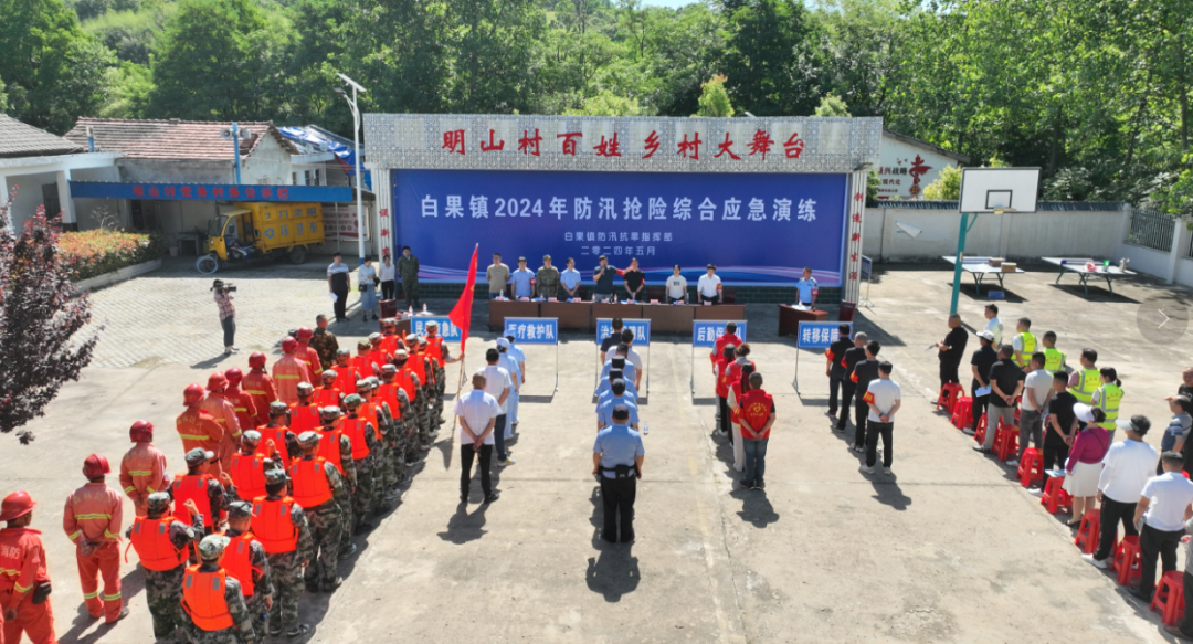 5月29日,白果镇组织全体国家干部、相关镇直单位负责人及工作人员、各村(社区)党组织书记以及镇村应急抢险队员130余人开展防汛抢险综合应急演练,以“练”筑防,以“练”备战,全力打好防汛抢险“主动仗”。