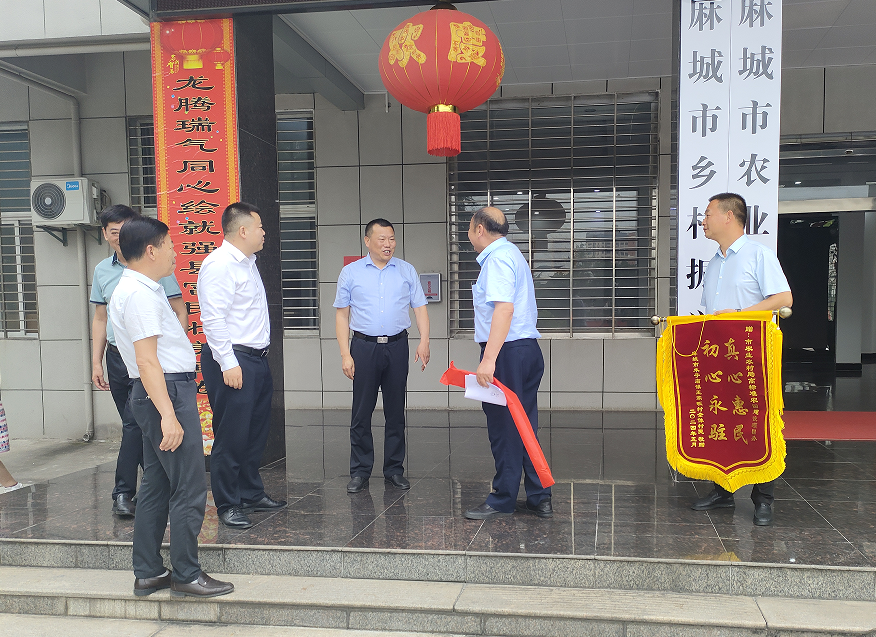 6月4日,木子店镇王家畈村村民代表王远金怀着激动的心情,将一面写有“初心永驻 真心惠民”的锦旗送到了市农业农村局主要负责人手中,表达他们对高标准农田建设工作的衷心感谢与高度认可。