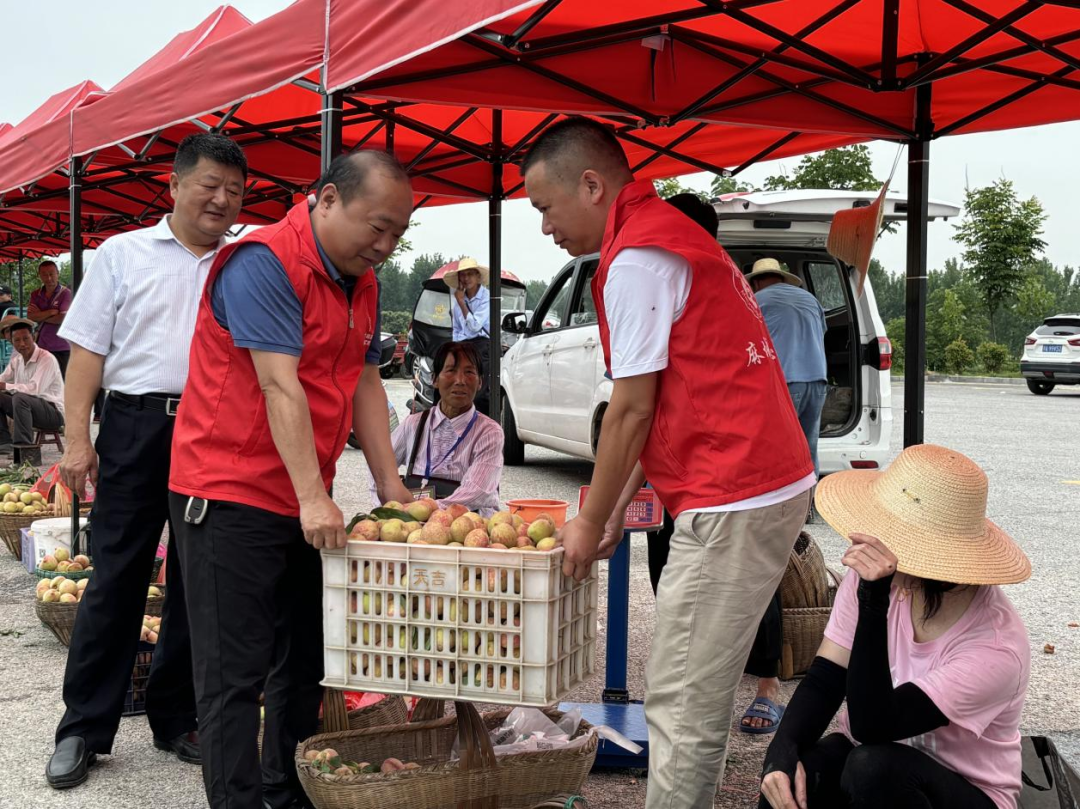 6月4日,阎家河财政所组织干部职工组成志愿者队伍,前往驻点村太子庙村胭脂桃种植基地帮助农户采摘、销售鲜桃。