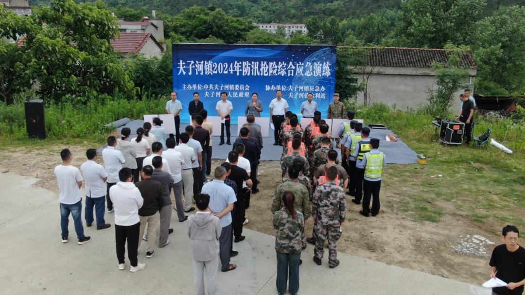 6月5日,夫子河镇在大石板水库开展2024年防汛抢险综合应急演练,织密防汛网,筑牢安全墙。