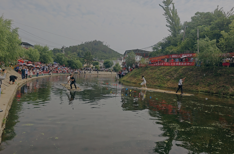 6月8日,黄土岗镇槐树边村第三届竹排文化节竹排决赛火热比拼中。