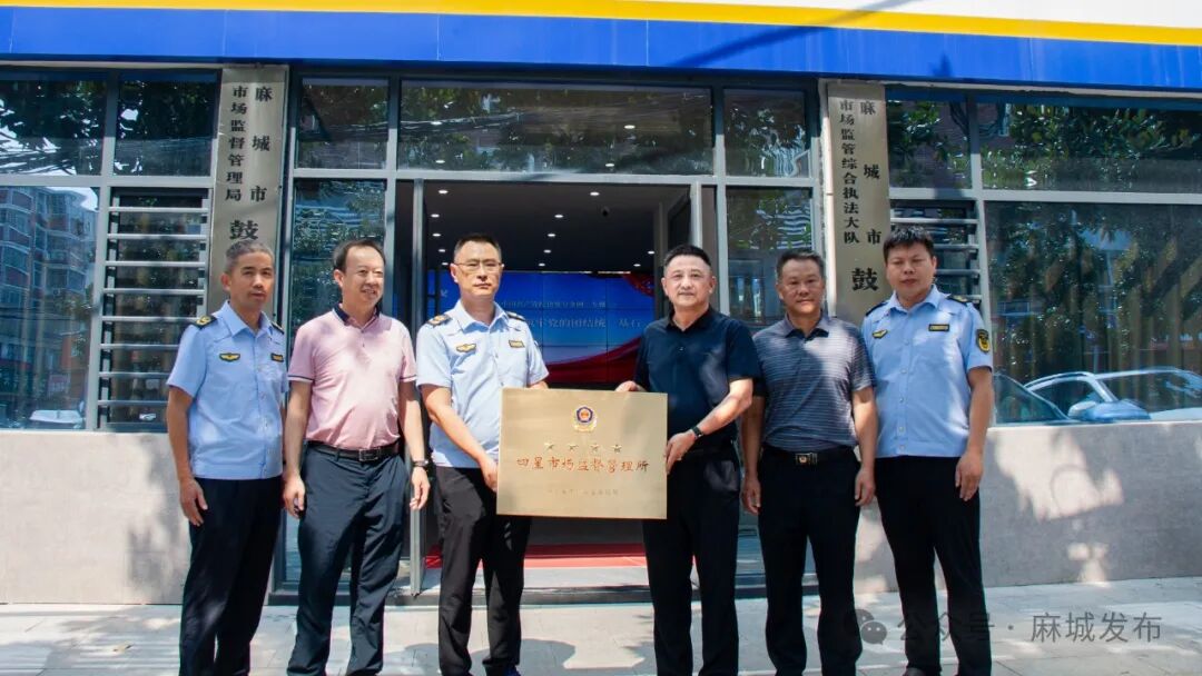 8月14日,黄冈市市场监督管理局党组成员、副局长陈建军为麻城市市场监督管理局鼓楼市场监督管理所颁发省级“四星市场监督管理所”牌匾。