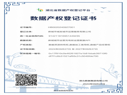 近日,市城发集团深度挖掘分析全市城区停车和公共充电站运营信息,与湖北省数据集团开展深度合作,对停车和充电等数据开展仔细梳理和盘点,对其作用和价值进行深入研究,成功将智慧停车和新能源充电项目中的近万条数据资源转化为数据资产,获得了湖北省数据产权登记平台《数据产权登记证书》。