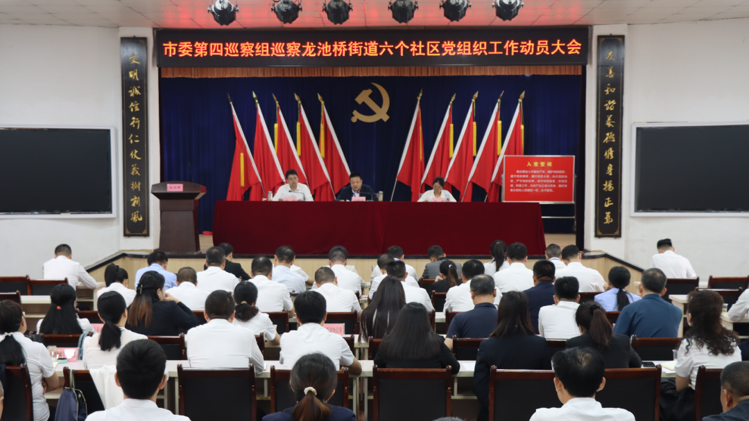 根据市委巡察工作统一部署,10月17日,市委第四巡察组巡察龙池桥街道办事处社区党组织工作动员会召开,深入学习贯彻习近平总书记关于巡视工作重要论述和全国巡视工作会议精神,贯彻落实新修订的巡视工作条例,对龙池桥街道办事处六个社区党组织巡察工作进行动员部署。