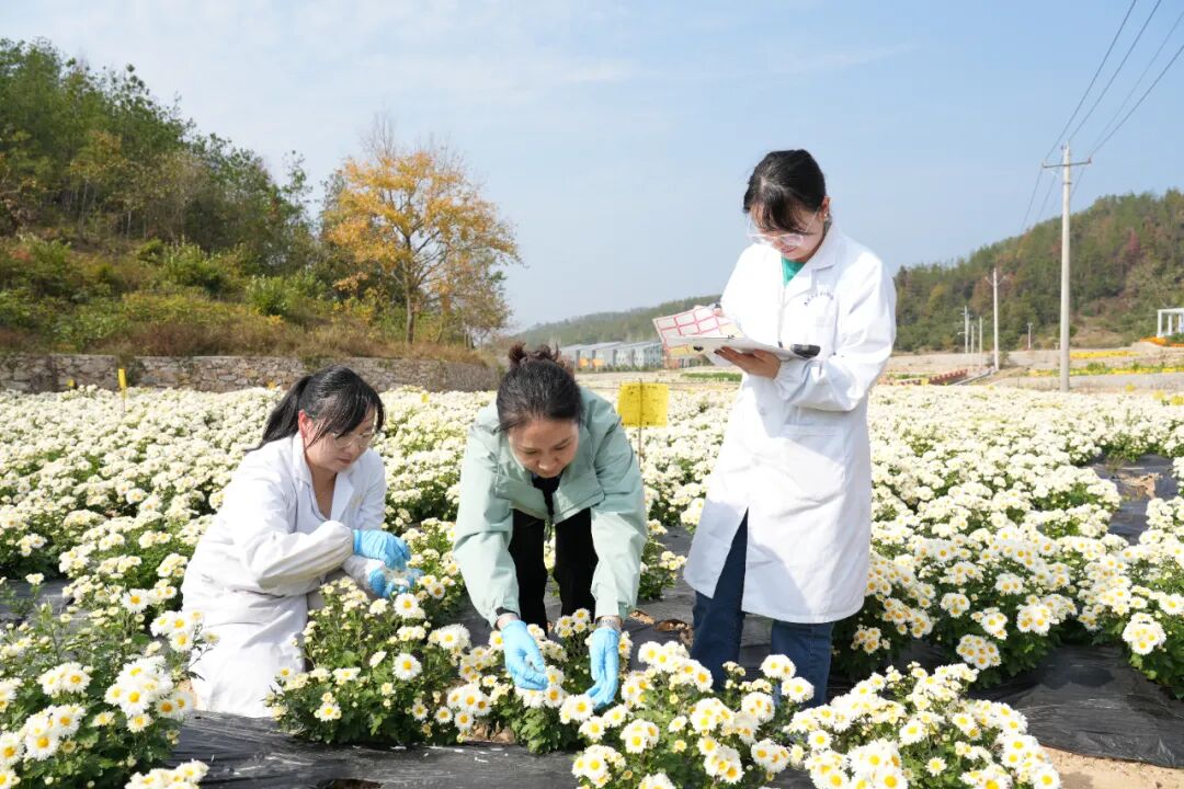 在现场采样过程中,技术人员严格按照统计学要求的抽样方法,确保样品的代表性。他们对菊花鲜花、根、茎、叶以及土壤进行全方位采样,详细记录采样时间、采样地点(经纬度)、采样品种、基地信息等,后期将对菊花安全指标和药用有益成分进行全面分析。