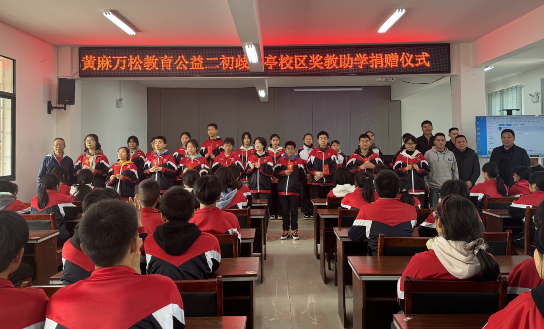 11月22日,黄麻万松公益书院来麻城市第二初级中学歧亭校区开展捐赠活动。华中科技大学法学院工会主席、博士生导师彭礼堂教授参加捐赠活动。