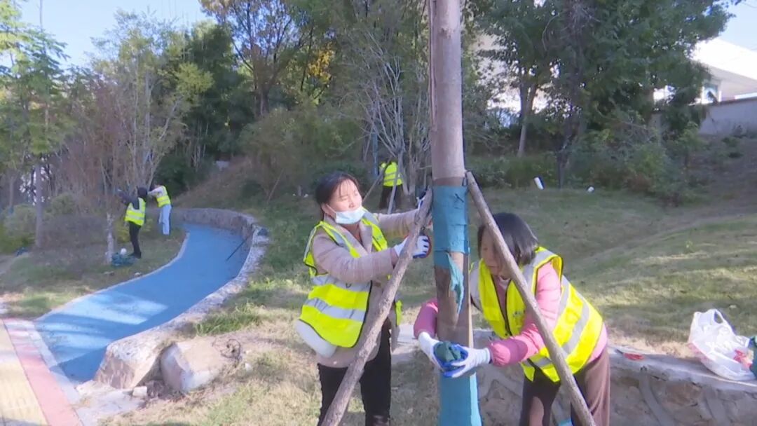 园林工作人员采取“分组包干”的方式,对城区主次干道、公园、游园等场所的树木进行全方位“体检”,用断线钳、剪刀等工具细心清除行道树上缠绕的杂物。