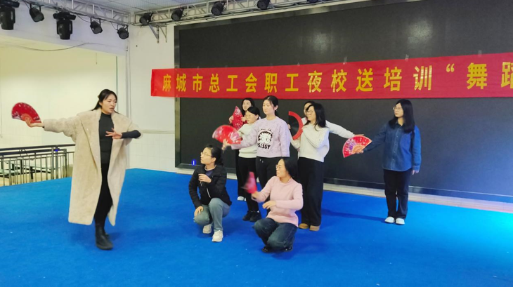 12月25日,市总工会职工夜校将舞蹈培训送进马勒三环气门驱动(湖北)有限公司的年会排练现场,助力该企业工会筹备年会,为职工的岁末时光增添了一抹绚丽亮色。