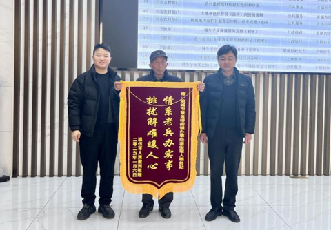 1月6日,陡坡山社区铁路生活区退役军人黄大爷向黄金桥街道退役军人服务站送来一面写有“情系老兵办实事,排忧解难暖人心”的锦旗,向该站在其家庭遭遇困境时提供的帮助表示由衷感谢。