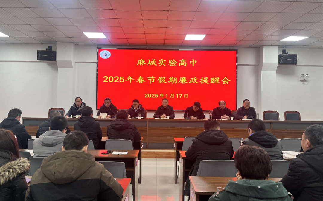 为深入贯彻落实中央八项规定精神,强化师德师风建设,1月17日,麻城实验高中召开春节假期廉政提醒会议。