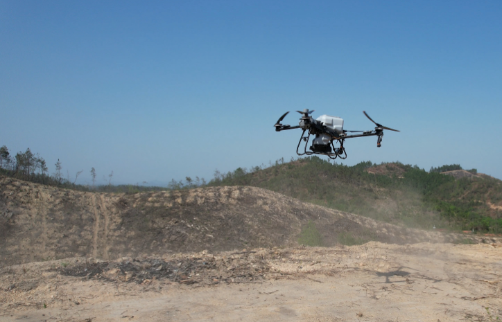 无人机飞播相比于传统点播方式造林,集人工智能、立体巡视为一体,可以大范围开展山体巡查工作,找到适合播种的位置并进行精准化播种,同时还能对地形复杂、人员难以到达的位置进行无死角覆盖。一架无人机一次可带50千克种子,播种100亩,平均一天可播种1000亩, 5个人一台飞机一天就能造林1000亩。