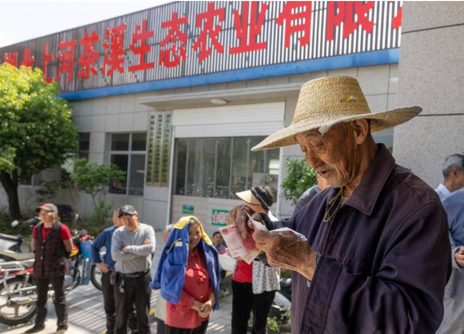 茶农在出售当天采摘的茶叶鲜叶后收获满满 摄影 肖小芹