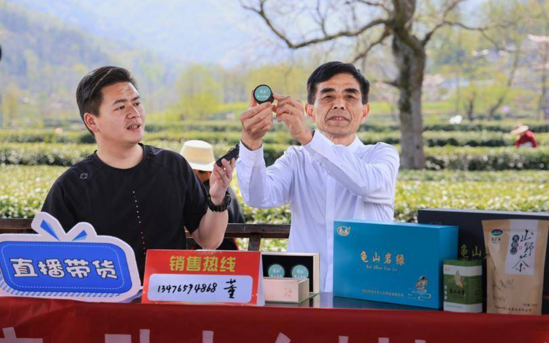4月19、20日,金利峰公司在生产车间举行“龟山岩绿”直播带货,产品爆单共计交易上千单、销售额20余万元。为了让特色农产品卖得出、卖得好,龟山镇还组建了专业的电商运营团队,为农户提供包装设计、品牌策划、直播培训等一站式服务。在包装上,推出“龟山岩绿·云雾珍品”“大别山山珍礼盒”等系列文创产品,将龟峰旭日、茶田风光等元素融入包装设计,让农产品变身“网红伴手礼”;在品牌建设上,成功注册“龟山岩绿”地理标志证明商标,制定从种植到加工的全流程标准,确保每一片茶叶都有“身份证”。2024年,全镇农产品加工转化率提升至75%,附加值较传统销售模式增长近一倍。