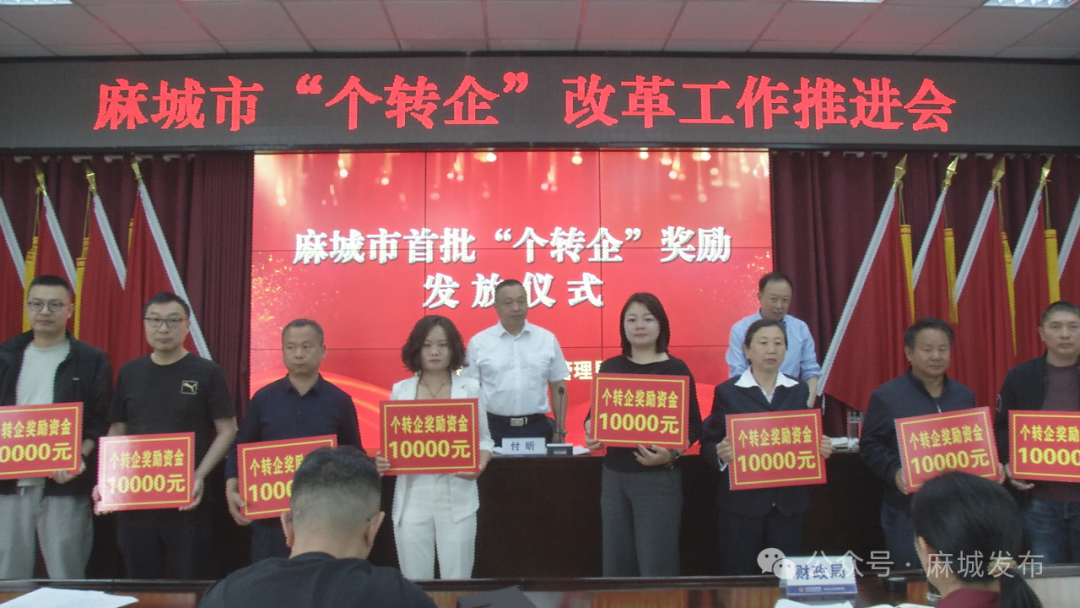 4月24日,麻城市市场监管局为首批完成“个转企”的8家小微企业集中发放奖励资金8万元,单户奖励最高1万元,激励激活优质市场主体积极性,进一步培优赋能助力企业扩大生产规模,升级设备技术,为高质量发展注入新动能。