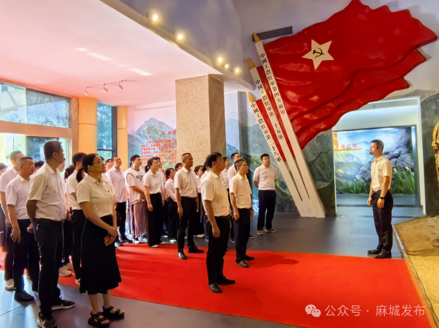 在庄严肃穆的革命烈士纪念碑前,全体党员深切缅怀革命先辈的丰功伟绩,并重温入党誓词。随后,党员干部依次参观了鄂豫皖红军发展史陈列馆和大别山红廉文化馆,通过珍贵的历史文物、图片和影像资料,深入了解大别山地区革命先烈艰苦卓绝的斗争历程,深刻感悟“坚守信念、胸怀全局、团结奋进、勇当前锋”的大别山精神。