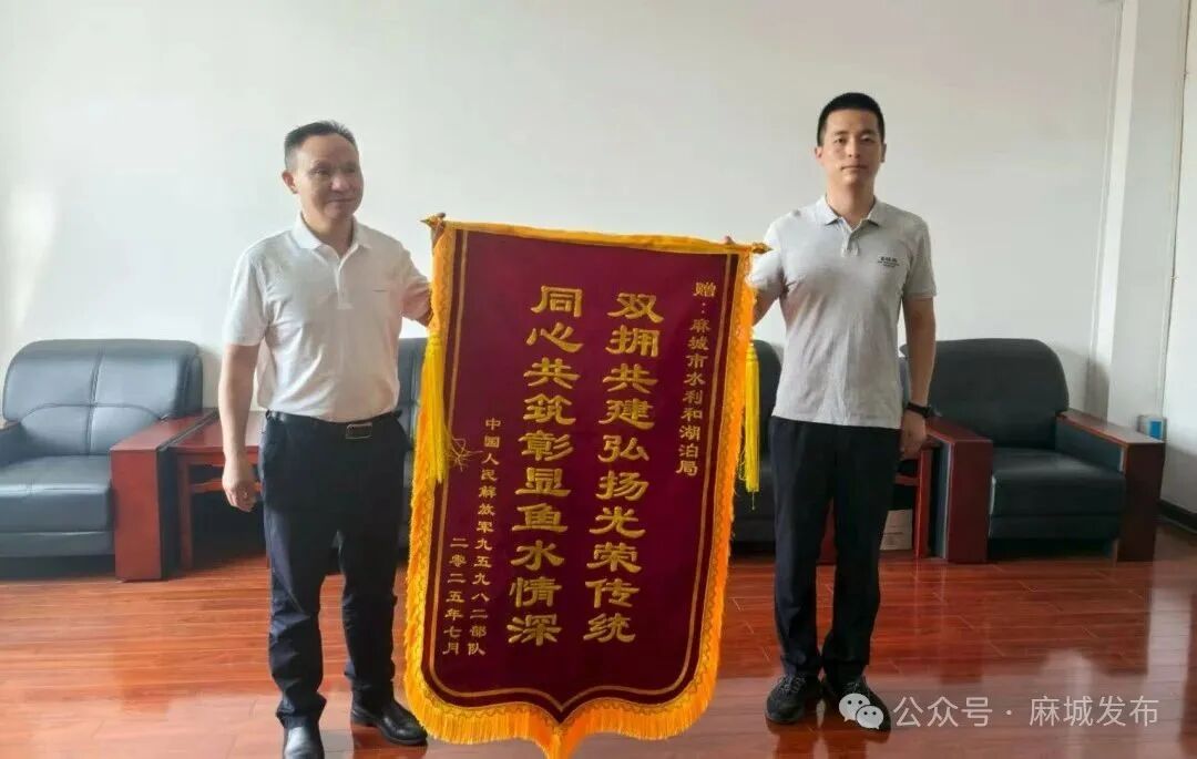 近日,市水利和湖泊局收到了一份饱含深情的特殊“八一”礼物——一面来自解放军某部队的鲜艳锦旗和一封热情洋溢的表扬信,对该局转业军人喻佳在配合部队一项重要工作中展现的过硬素质和突出贡献表示高度赞誉。