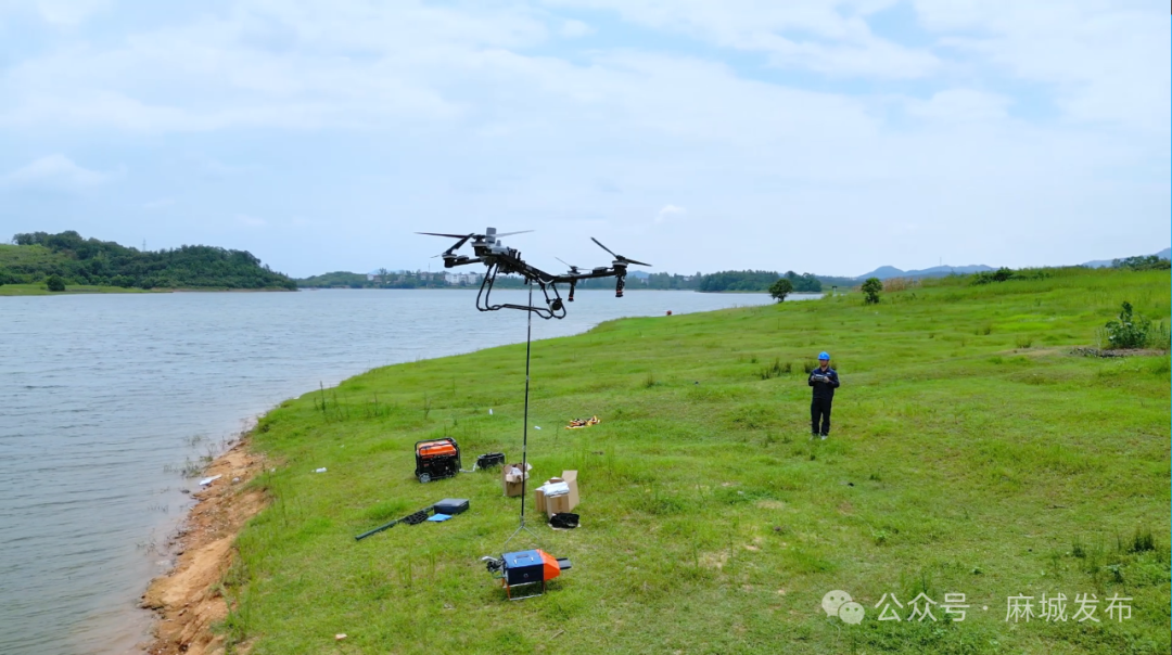 8月7日,国网麻城市供电公司在浮桥河水库后河路亚垂钓基地,采用“无人机定位+绝缘涂敷机器人”技术对裸导线进行绝缘化处理,保障钓友安全垂钓。