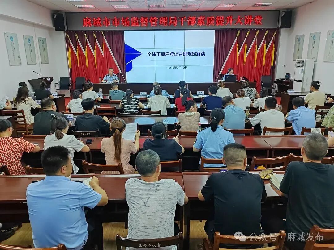 麻城市市场监督管理局紧紧围绕“干部素质提升年”相关要求,坚持多措并举提素质,蓄力赋能促发展,为优化营商环境、守护民生安全贡献市场监管力量。