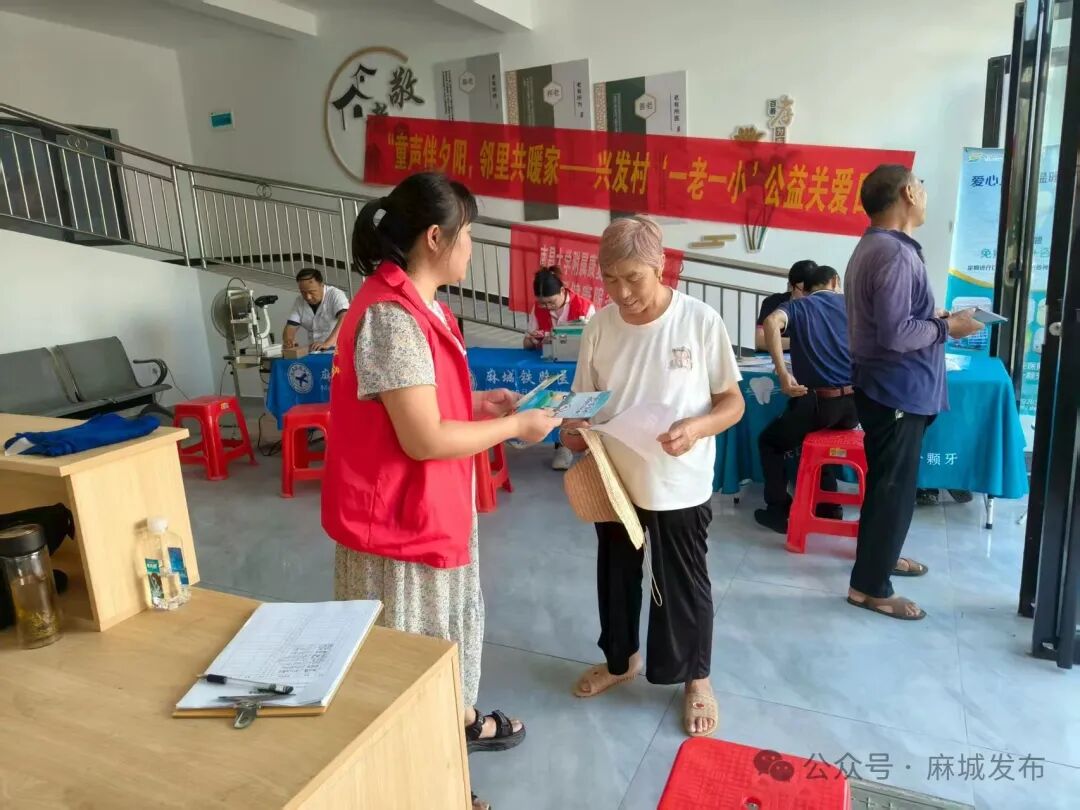 8月19日,黄金桥街道兴发村联合麻城铁路医院、时代口腔医院开展公益关爱日活动,将医疗服务送到居民家门口,向老年居民及少年儿童传递社会的温暖与关爱。