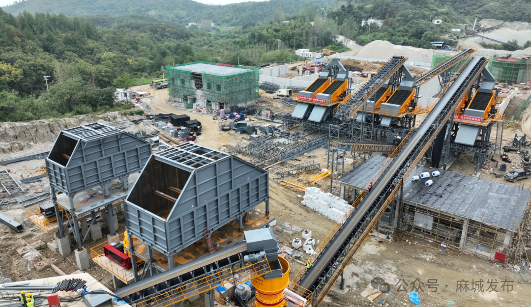 国庆中秋“双节”期间,位于麻城金磊绿色材料开发有限公司夫子河矿山建设现场一片繁忙。一条崭新的生产线正在带料试产。这条生产线,采用了“三级破碎+整形”生产工艺,能实现道石、普料、精料生产灵活切换,正式投产后将具备年产250万吨以上生产加工能力。