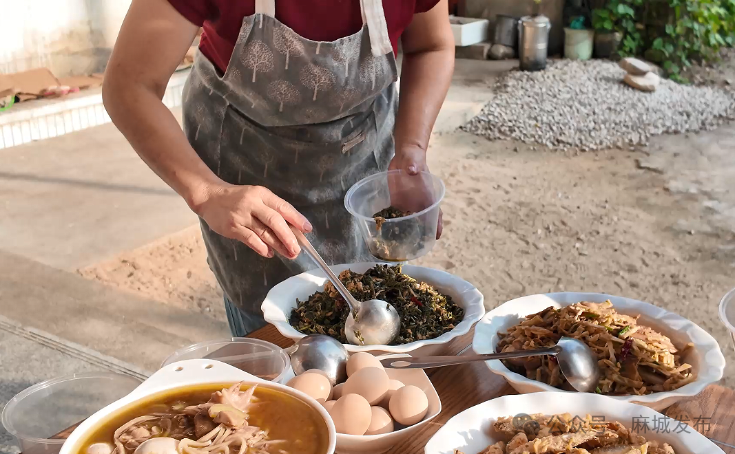 【村民何家菊】“还热乎,这是中午特意为他们做的麻城特产肉糕。他们都是外地人,让他们尝一下我们这里的特产,另外还有4个菜。”