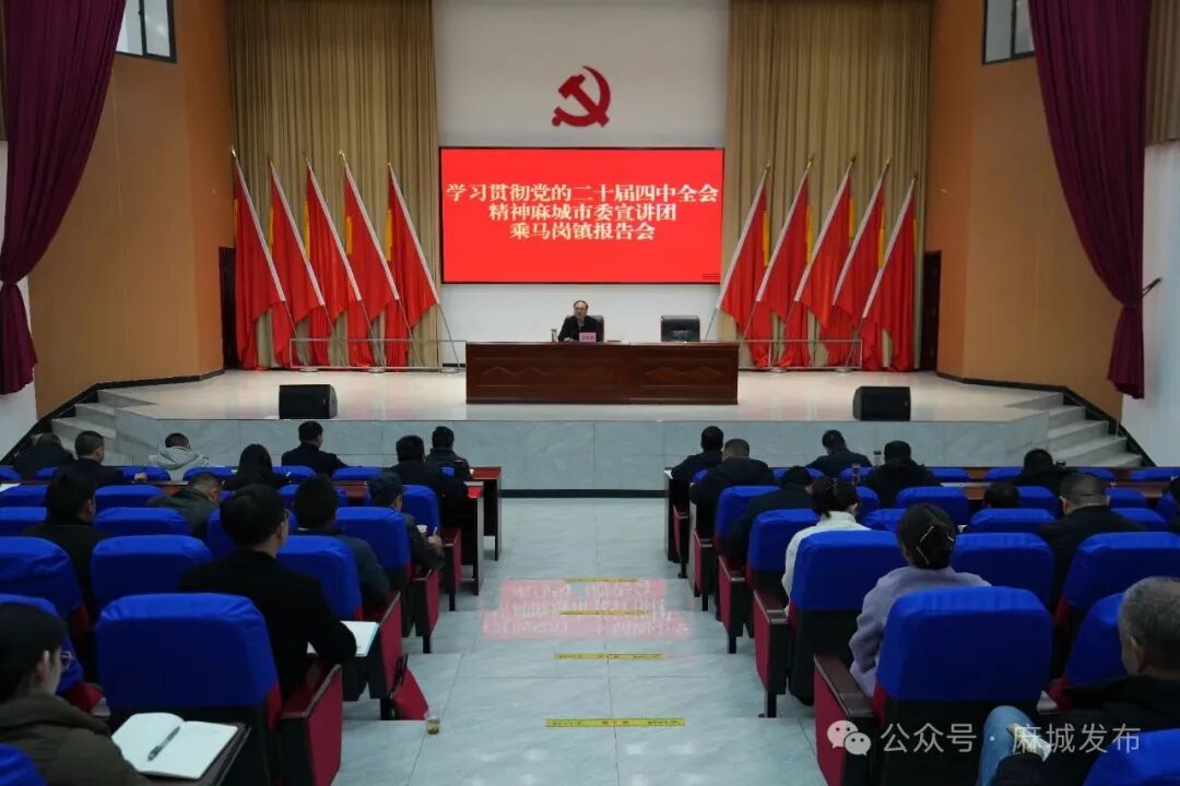 裴永波在宣讲时强调,要深刻领会,准确把握全会精神要义。党的二十届四中全会擘画发展蓝图、规划实践路径、作出战略部署,是引领“十五五”时期经济社会高质量发展的行动纲领。要切实把思想和行动统一到全会精神上来,全力推动全会精神走深走实、落地见效。要以学促讲,广泛传播全会时代强音。要把学习好、宣传好、贯彻好党的二十届四中全会精神作为当前和今后一个时期的重大政治任务,坚持原原本本学、融会贯通学、联系实际学,全方位、高质量开展好宣传宣讲工作,全面掀起学习贯彻全会精神的热潮。要对标对表,坚定贯彻全会部署要求。乘马岗镇要锚定“打造全市高质量发展的红色文化旅游产业基地”发展定位,抬升标杆、奋争一流,在持续擦亮红色品牌上勇当先锋,在做大做强特色产业上精准施策,在做强项目支撑上夯实基础,在推进美丽城乡建设上强化统筹,加快推进经济社会高质量发展。要扛牢责任,扎实做好当前重点工作。要把学习贯彻全会精神成效转化为担当实干、狠抓落实的具体行动,统筹抓好乡村振兴、项目建设、招商引资、森林防灭火、安全生产、平安稳定等重点工作,高质量完成全年目标任务,奋力夺取明年“开门红”。