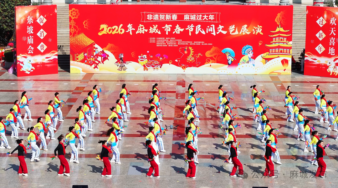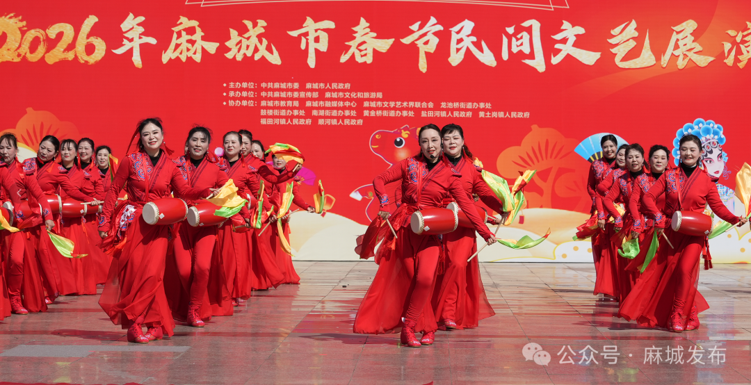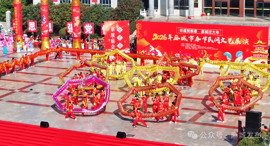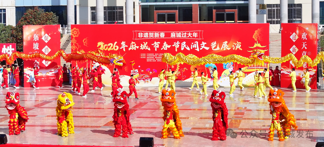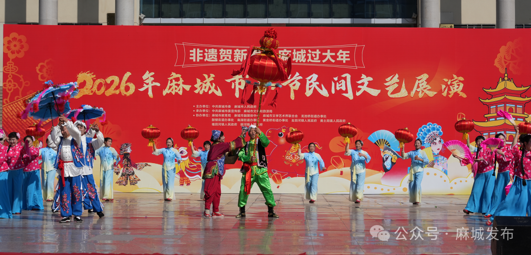 2月21日正月初五,麻城市会展中心广场人潮涌动,锣鼓喧天,“非遗贺新春 麻城过大年”2026年麻城市春节民间文艺展演活动在这里隆重举行。活动通过主会场与分会场联动的形式,为全市人民献上了一场精彩纷呈、年味十足的文化盛宴。