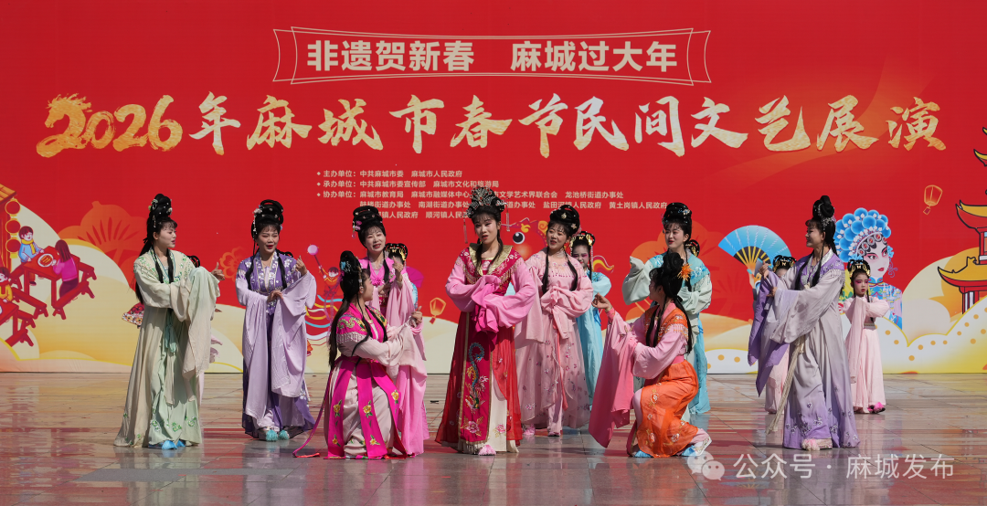 本次展演分为“如此盛世 且此欢歌 欢天喜地过新年”“红土地 红底色 红日子 美丽麻城展新颜”“老家麻城 希望麻城 爱我麻城 幸福麻城谱新篇”三个篇章。舞台上,既有《麻城花挑》《莲湘舞》等独具麻城特色的非遗项目,也有《盛世欢歌》《精忠报国》等威风锣鼓表演,还有《梨园春韵》《舞动麻城》《大家一起来》等戏曲与舞蹈节目。演员们用精湛的技艺和饱满的热情,生动展现了麻城人民欢乐喜庆的精神面貌,赢得了现场观众阵阵掌声。
