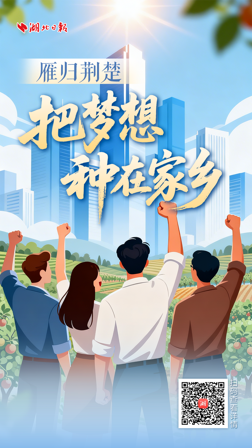 他们从荆楚大地出发 奔向更广阔的世界 他们带着本领、怀揣热爱 循着乡音回归故土 他们是“荆楚返乡创业之星” 雁归荆楚,筑梦支点 一起来看“归雁”们 以创业之笔绘就支点建设 乡村振兴的鲜活图景 把梦想种在家乡 ➤点击下方海报