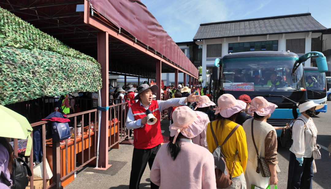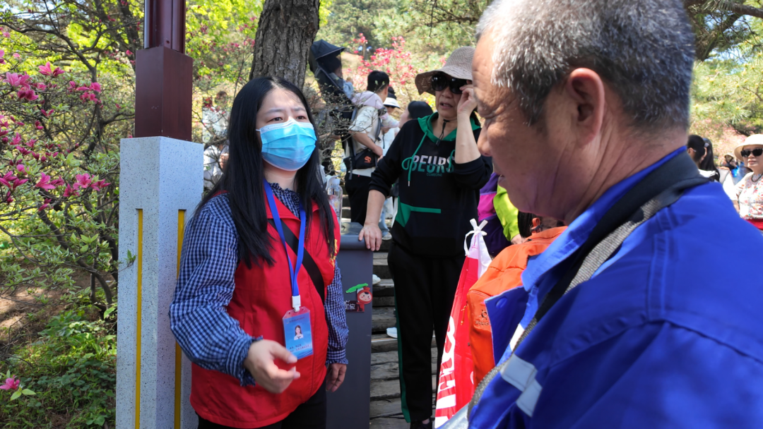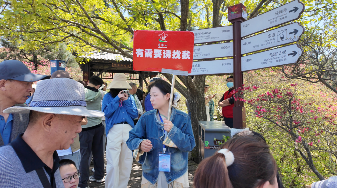 在各个景点,身着红马甲的志愿者为游客提供咨询引导、秩序维护等服务。志愿者易城介绍,景区共组织近400名青年志愿者,在游客中心、交通换乘节点、核心赏花区域等重点区域设置志愿服务点位,为游客提供咨询引导、应急处突、秩序维护等志愿服务工作。