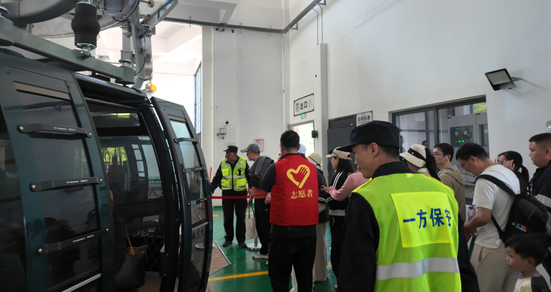 上午9时许,记者跟随饶欢来到他日常巡查第一站——景区北大门。此时,景区的检票员和转运车驾驶员开始忙碌起来。