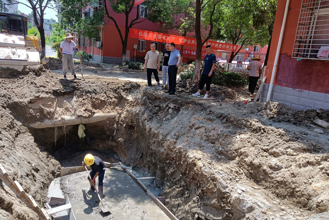市住建局相关负责人在开展“下基层察民情解民忧暖民心”实践活动的过程中,带领国有房屋管理所工作人员实地踏勘,深入了解情况,协调护城河和月亮湖综合整治指挥部,争取项目资金,将小区排水、雨污分流工程一体纳入护城河和月亮湖综合改造项目,增加一条直径2米的泄洪管道,积极推进小区内的排水改造施工。目前,小区内集水沟、排水管道、窨井施工已经完成,道路已经恢复,化粪池正在浇筑底板。